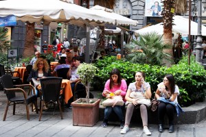 Ir štai prieš mūsų akis – dar vienas mūsų įgyvendintas tikslas – Neapolis, kuriame dar žaliuoja parkai, žydi gėlės, o dauguma vietinių vis dar vaikšto trumpomis rankovėmis. Vasara, ne kitaip. Neapolio senamiestis pilnas žmonių net ir vidury dienos – visi vaikšto skersai važiuojamosios dalies, niekas per daug nekreipia dėmesio nei į automobilius, nei į dviratininkus. Bet čia ypač žavi siauros senamiesčio gatvelės, kuriomis neįmanoma prasilenkti, taip pat žavingi pagyvenę italai.